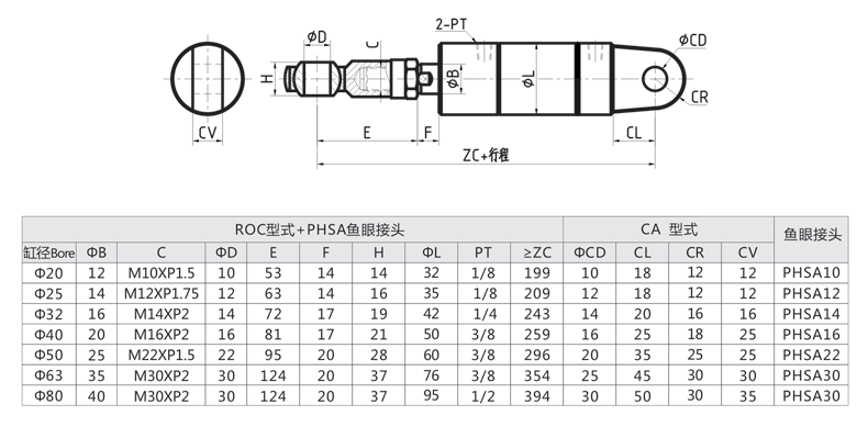 標準ROC型 單耳型+PHSA魚眼接頭外形安裝尺寸圖